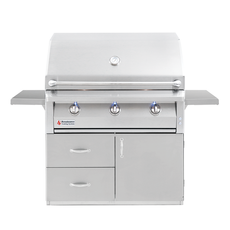 This freestanding grill delivers professional-grade performance with the convenience of a fully mobile design. Crafted from durable 304 stainless steel, it offers exceptional heat control, generous cooking space, and premium features for everything from weeknight dinners to large gatherings. The sleek cart base provides ample storage and easy mobility, making it a standout centerpiece for any outdoor kitchen or patio.